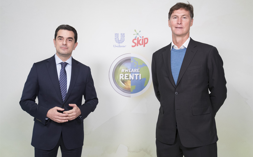 Στη Συνέντευξη Τύπου που διοργάνωσε το Skip και η Unilever, με τίτλο «Για ένα καλύτερο αύριο #WeAreRenti», ως ομιλητές συμμετείχαν οι κ. Μιχάλης Οικονομάκης Πρόεδρος Ελληνικής Εταιρίας Αξιοποίησης Ανακύκλωσης (ΕΕΑΑ), ο κ. Γιώργος Καρατζάς Director Home Care ΕΛΑΪΣ-Unilever Hellas και η κα Κατερίνα Αλιφραγκή Marketing Manager Laundry ΕΛΑΪΣ-Unilever Hellas.
