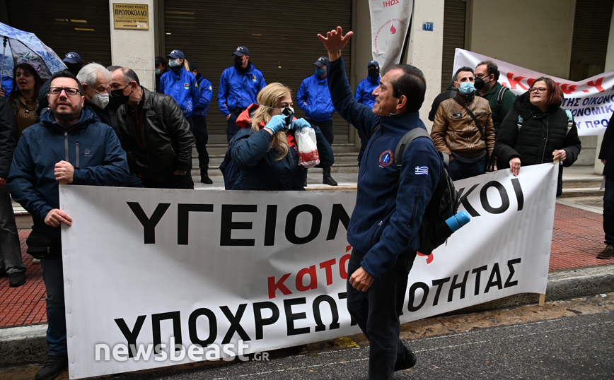 «Υγειονομικοί κατά της υποχρεωτικότητας» και «χθες ήρωες – σήμερα μολυσματικοί» αναγράφεται στα πανό υγειονομικών που πραγματοποίησαν σήμερα συγκέντρωση διαμαρτυρίας στο κέντρο της Αθήνας.