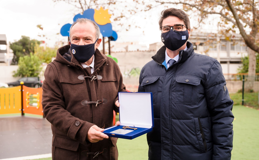 Η νέα παιδική χαρά βρίσκεται στην οδό 28ης Οκτωβρίου 47 και δημιουργήθηκε σε χώρο αντίστοιχης παλαιάς εγκατάστασης, σε έκταση 420 τ.μ. Περιλαμβάνει 7 νέα όργανα για παιδιά με ειδικές ανάγκες, καθώς και τον συνοδευτικό εξοπλισμό (* παγκάκια, χλοοτάπητας, ηλιακά φωτιστικά, κάδοι απορριμμάτων με φωτοβολταϊκό σύστημα και βρύση ειδικού σχεδιασμού για ΑΜΕΑ).