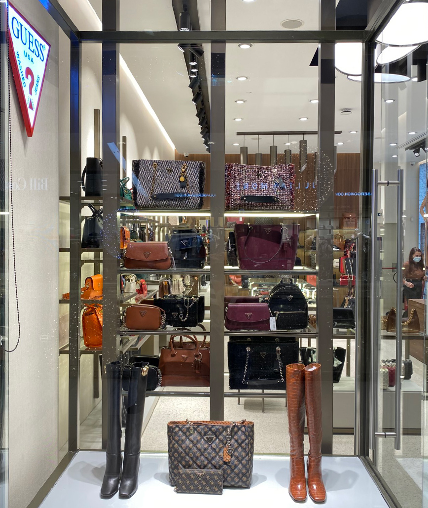 Η συλλογή GUESS accessories δίνει ραντεβού μαζί σας σε έναν ανανεωμένο χώρο 70 τ.μ. στο 2ο επίπεδο του αγαπημένου πολυκαταστήματος. Εκεί θα ανακαλύψετε τα αξεσουάρ που ονειρεύεστε για τις πιο stylish εμφανίσεις σας: τσάντες, πορτοφόλια, ζώνες και φουλάρια σε chic χρώματα αλλά και μοναδικά κοσμήματα και τα ρολόγια που ξεχωρίζουν τόσο στις πρωινές όσο και στις βραδινές εμφανίσεις.