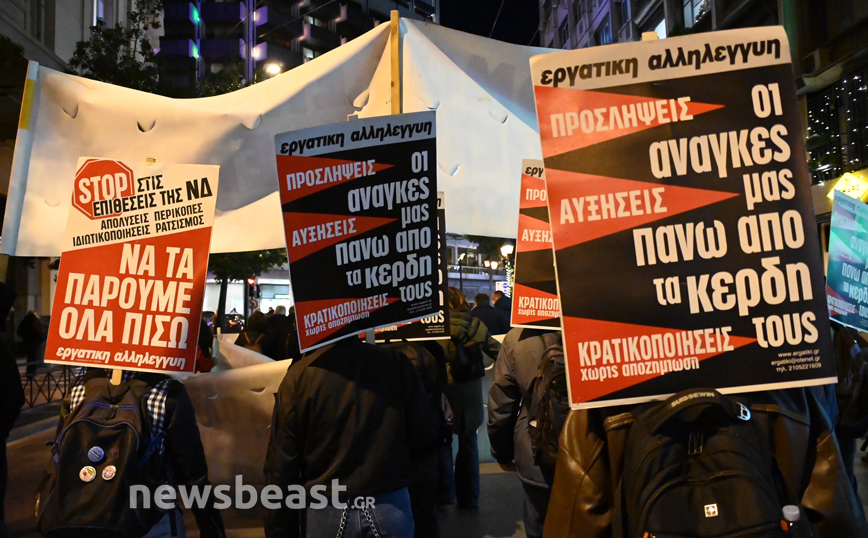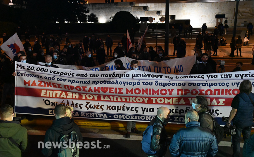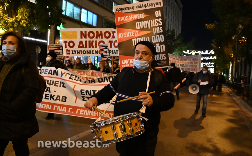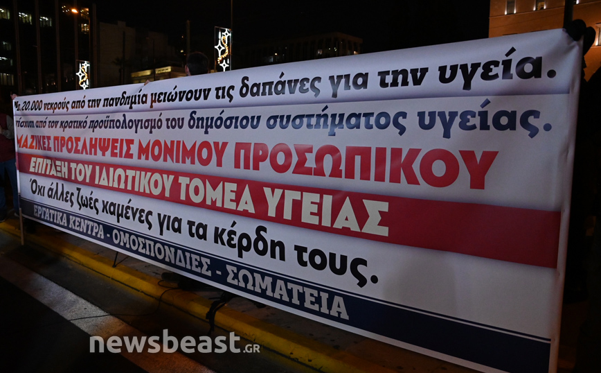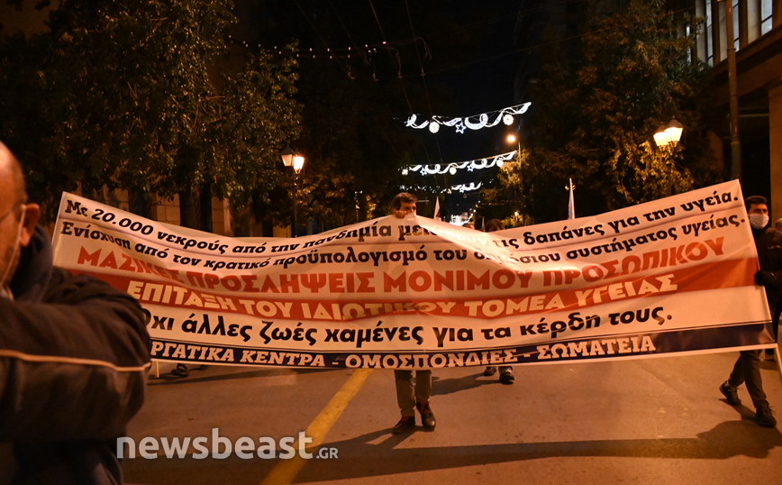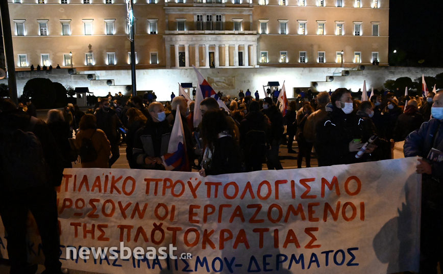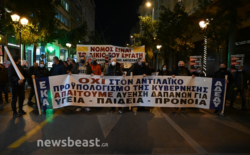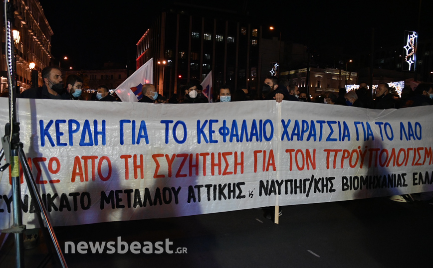 Διαδήλωση ενάντια στον προϋπολογισμό για το 2022, που συζητείται στη Βουλή, πραγματοποιείται αυτή την ώρα στο κέντρο της Αθήνας. Οι διαδηλωτές συγκεντρώθηκαν στα Προπύλαια και έφτασαν με πορεία στο Σύνταγμα έξω από τη Βουλή, ζητώντας να μην ψηφιστεί ο προϋπολογισμός της κυβέρνησης.