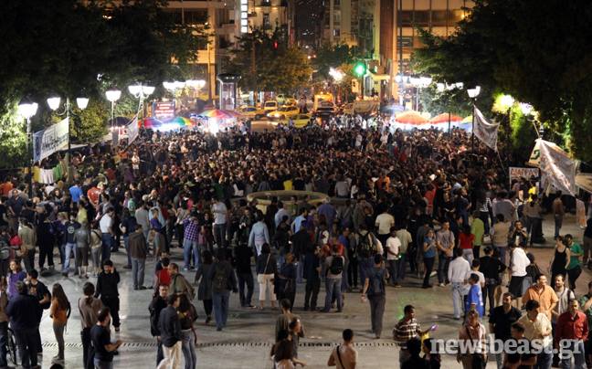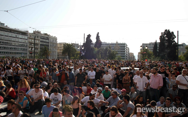 Όλα ξεκίνησαν στις 25 Μαΐου 2011 όταν πολλές χιλιάδες διαδηλωτών βρέθηκαν στην πλατεία Συντάγματος και σε άλλες πόλεις της Ελλάδας, ανταποκρινόμενοι στο κάλεσμα στο facebook να διαδηλώσουν ειρηνικά, χωρίς κομματικές «ταμπέλες» ενάντια στα προωθούμενα μέτρα λιτότητας, στα πρότυπα των κινητοποιήσεων του ισπανικού κινήματος των «Αγανακτισμένων».