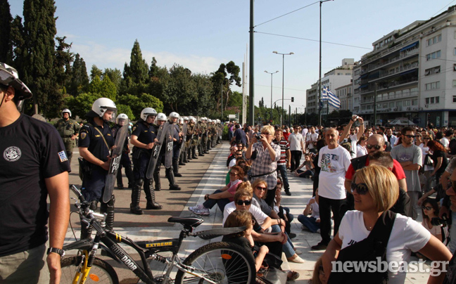 Κανείς δεν μπορούσε αρχικά να εκτιμήσει το μέγεθος της οργής. Η Βουλή βρέθηκε σε κλοιό διαδηλωτών με βασικό σύνθημα «Κλέφτες-κλέφτες», ενώ οι περίφημες «μούτζες» προς τους εκπροσώπους της εγχώριας πολιτικής σκηνής αποτέλεσαν τη χαρακτηριστική κίνηση έκφρασης της αγανάκτησης του συγκεντρωμένου πλήθους. Γρήγορα οι κινητοποιήσεις επεκτάθηκαν σε δεκάδες πόλεις της χώρας, στέλνοντας το μήνυμα στους κυβερνώντες πως οι πρώην ψηφοφόροι τους δεν ήταν διατεθειμένοι να ανεχτούν τη λιτότητα.