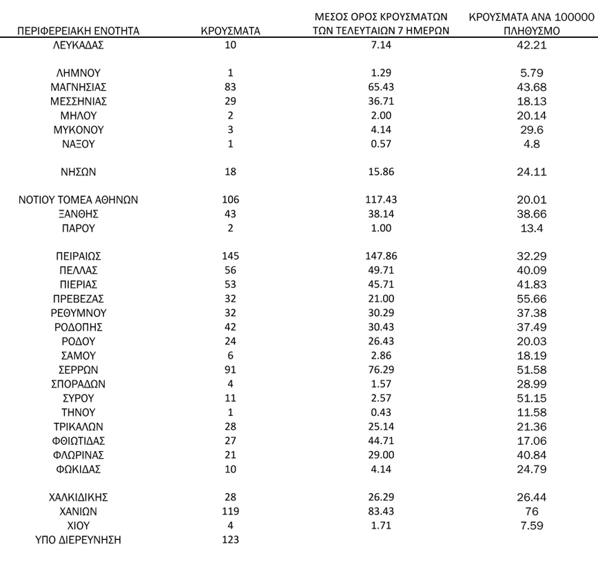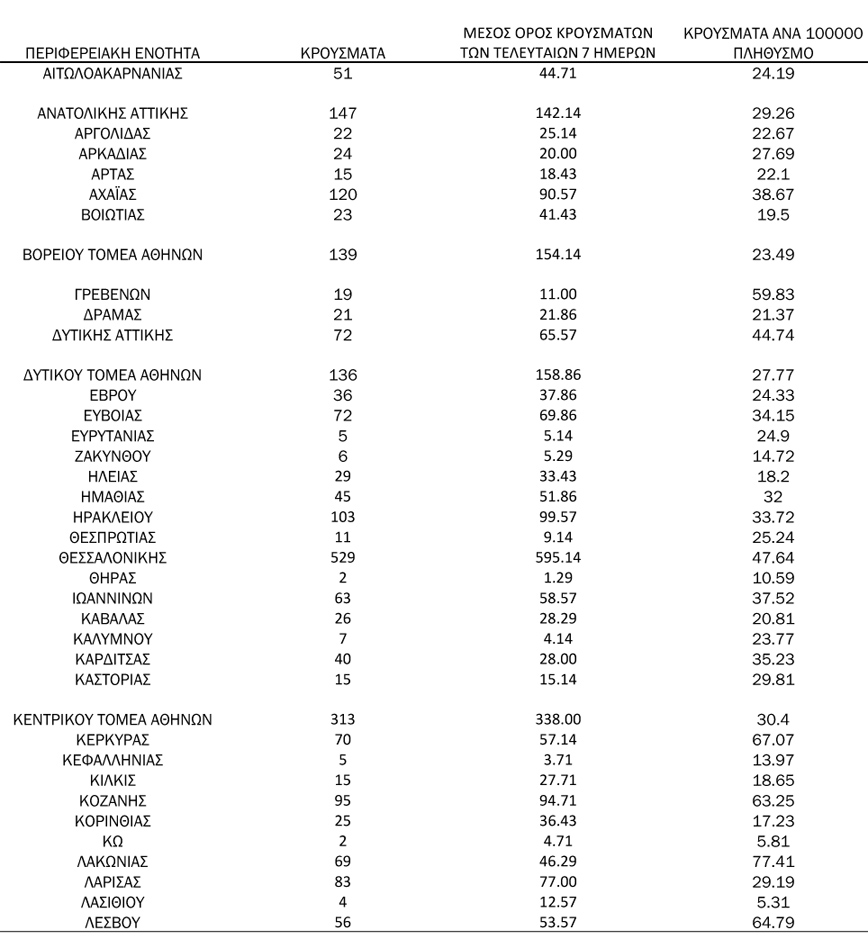 Συγκεκριμένα η Αττική έχει 1.076 νέα κρούσματα κορονοϊού, ενώ η Θεσσαλονίκη 529.