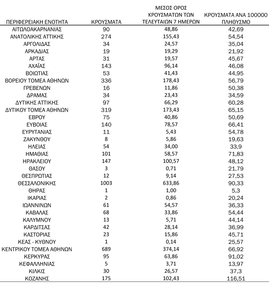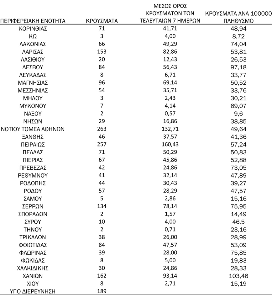 Συγκεκριμένα η Αττική έχει 2.264 νέα κρούσματα κορονοϊού και η κατανομή στις περιοχές είναι η εξής:
