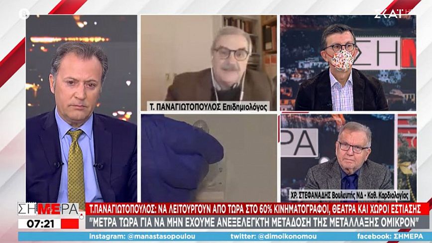 Λίγες μόλις μέρες πριν τα Χριστούγεννα και η μετάλλαξη Όμικρον προκαλεί περαιτέρω ανησυχία κυρίως λόγω των ρεβεγιόν. Ο καθηγητής Δημόσιας Υγείας και μέλος της Επιτροπής Εμπειρογνωμόνων Τάκης Παναγιωτόπουλος πρότεινε την άμεση λήψη μέτρων στη χώρα μας για να αναχαιτιστεί μια επερχόμενη εκθετική άυξηση κρουσμάτων.