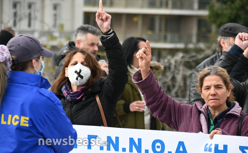 Επίσης οι συμμετέχοντας στην κινητοποίηση τάσσονται κατά του διαχωρισμού εμβολιασμένων – ανεμβολίαστων.