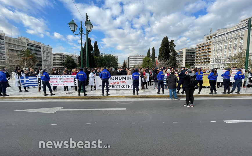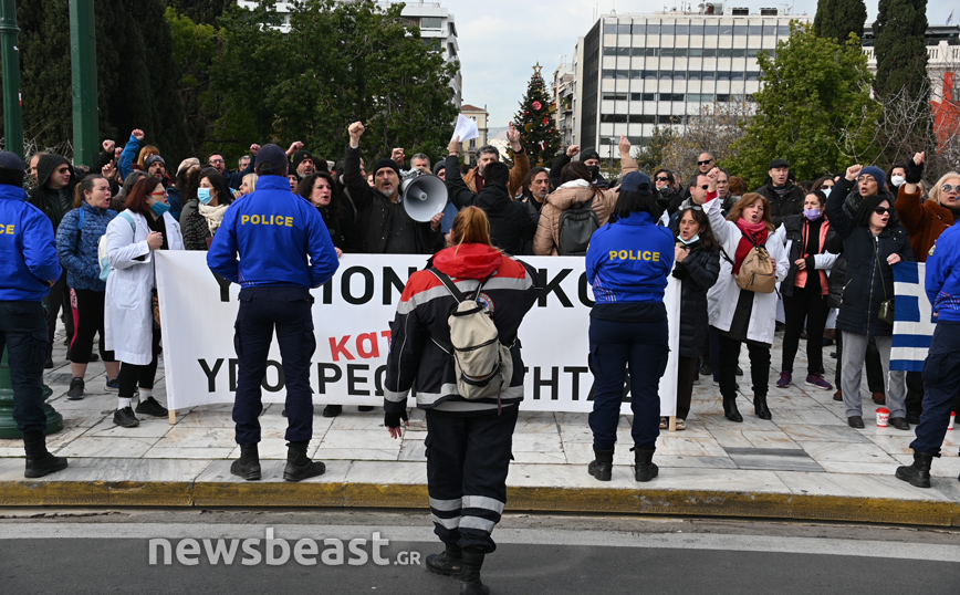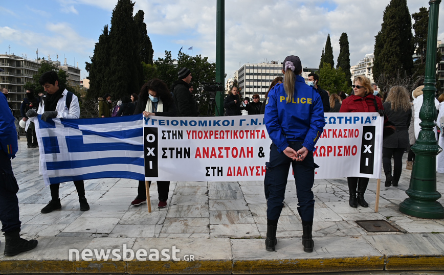 Συγκέντρωση διαμαρτυρίας πραγματοποιούν από τις 10 το πρωί στο Σύνταγμα οι υγειονομικοί αντιδρώντας κατά του υποχρεωτικού εμβολιασμού κατά του κορονοϊού. Οι εργαζόμενοι στην υγεία βρίσκονται έξω από τη Βουλή ενώ σήμερα οι βουλευτές ψηφίζουν για την παράταση των αναστολών εργασίας.