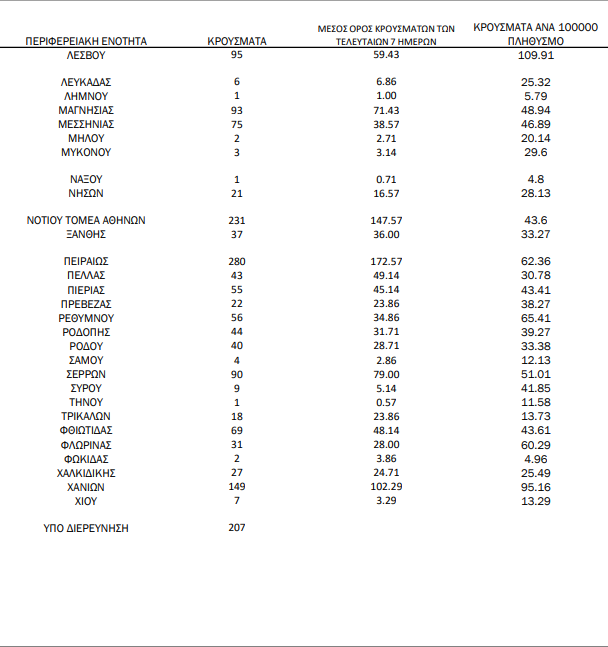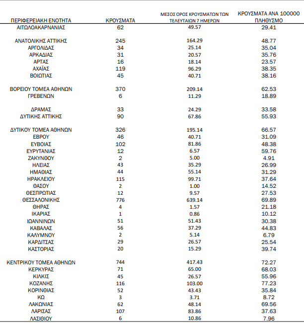 Συγκεκριμένα οι περιοχές της Αττικής έχει 2.307 νέα κρούσματα κορονοϊού, ενώ στη Θεσσαλονίκη εντοπίστηκαν 776 νέα περιστατικά.
