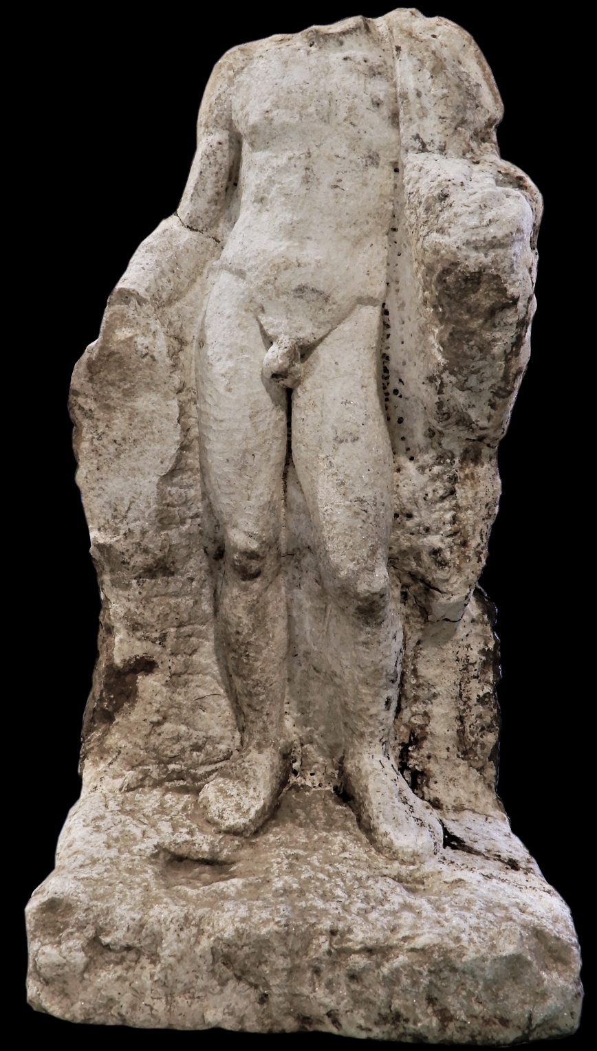 Όπως αναφέρει η σχετική ανακοίνωση του ΥΠΠΟΑ, με ριγμένη στον αριστερό ώμο χλαμύδα να τυλίγεται γύρω από το χέρι του, ο γυμνός νεαρός με το αθλητικό κορμί αναδύεται από τον όγκο του μαρμάρου, ανακαλώντας κλασικά πρότυπα, εικόνες αγαλμάτων που σχετίζονται με τον Απόλλωνα ή τον Ερμή. Πρόκειται για έργο ενός ιδιαίτερα ικανού τεχνίτη που ωστόσο είναι προφανές ότι δεν τελείωσε ποτέ. Για κάποιο λόγο, ο γλύπτης, μολονότι είχε προχωρήσει πολύ την επεξεργασία των κύριων όψεων, φθάνοντας σε σχεδόν τελικό στάδιο, αποφάσισε να εγκαταλείψει την προσπάθεια ημιτελή.