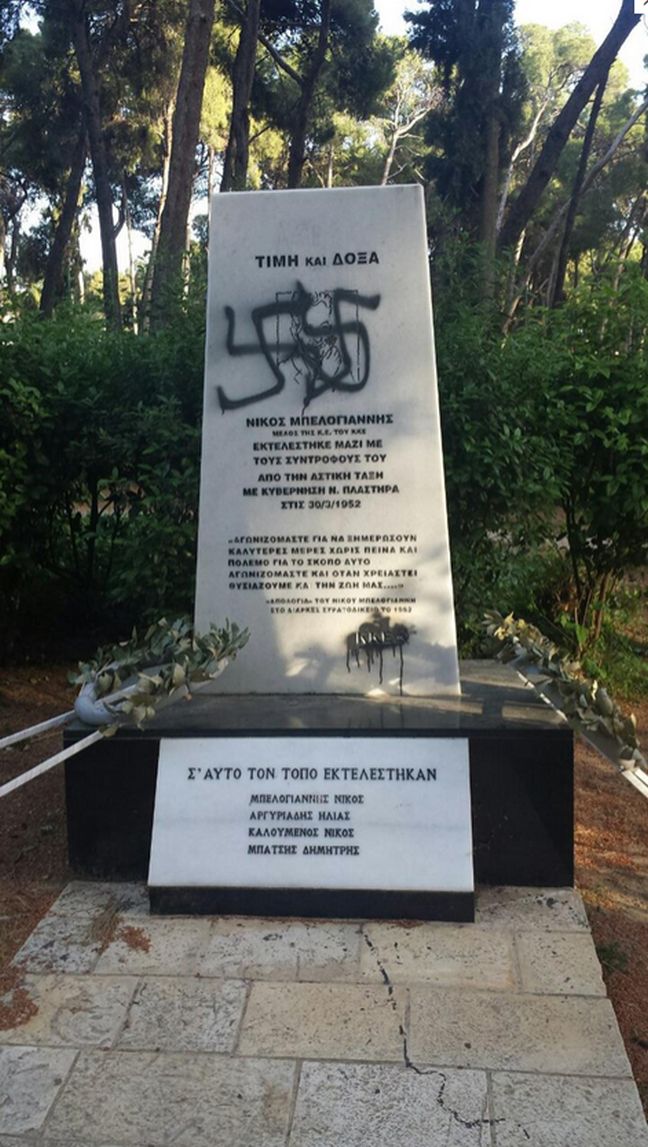 «Νοσταλγοί του Χίτλερ και του ναζισμού τόλμησαν να λερώσουν με τα άθλια σύμβολά τους το μνημείο του ήρωα κομμουνιστή, δολοφονημένου από το μετεμφυλιακό αστικό κράτος, Νίκου Μπελογιάννη», καταγγέλλει σε ανακοίνωσή της, η Τομεακή Επιτροπή Α’ Αθήνας – Γαλατσίου του ΚΚΕ.