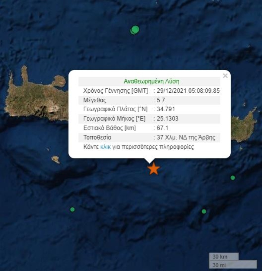 «Μεμονωμένο γεγονός», που δεν πρέπει να μας ανησυχεί και ανήκει σε μία ειδική κατηγορία σεισμών, τους σεισμούς ενδιάμεσου βάθους, είναι η σεισμική δόνηση 5,7 βαθμών της κλίμακας Ρίχτερ που σημειώθηκε, στις 07:08, στον θαλάσσιο χώρο 48 χιλιόμετρα νοτιοδυτικά της πόλης της Άρβης, στην Κρήτη, σύμφωνα με όσα αναφέρει ο καθηγητής Γεωφυσικής, πρόεδρος του Τμήματος Γεωλογίας του ΑΠΘ Κώστας Παπαζάχος.