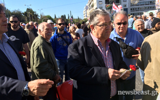 «Ο μόνος ρεαλιστικός, σίγουρος και ελπιδοφόρος δρόμος για το λαό μας σήμερα είναι ο δρόμος που οδηγεί στην έξοδο από τα μνημόνια και τους εφαρμοστικούς νόμους. Είναι ο δρόμος που οδηγεί στην ανάπτυξη της ταξικής πάλης, για τις αμοιβές των εργαζομένων, για τις Συλλογικές Συμβάσεις Εργασίας. Είναι ο δρόμος που οδηγεί σε ρήξη με την ΕΕ, το κεφάλαιο και την εξουσία του. Αυτό είναι το μήνυμα της σημερινής Εργατικής Κόκκινης Πρωτομαγιάς», δήλωσε ο γενικός γραμματέας του ΚΚΕ Δημήτρης Κουτσούμπας.