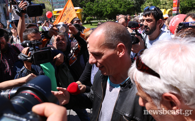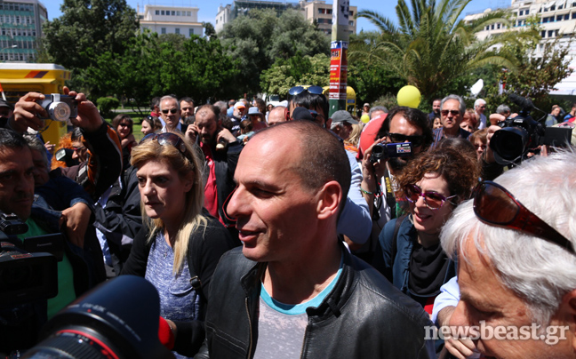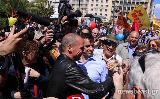 Στη συγκέντρωση της ΓΣΕΕ και της ΑΔΕΔΥ για την πρωτομαγιά βρέθηκαν ο υπουργός Οικονομίας Γιάννης Βαρουφάκης, υπουργός Εργασίας Πάνος Σκουρλέτης και ο βουλευτής του ΣΥΡΙΖΑ, Αλέξης Μητρόπουλος.