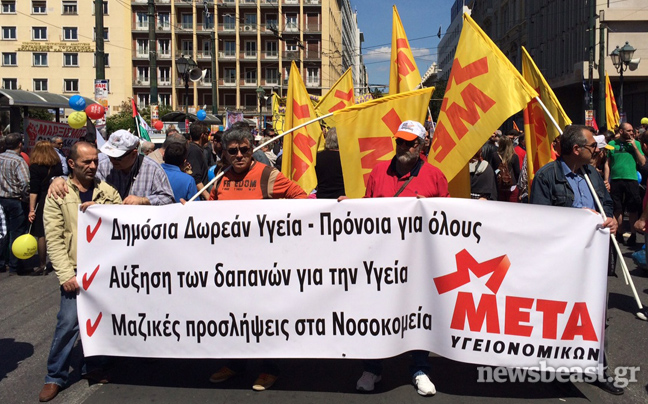 Στην κεφαλή της πορείας βρίσκεται ο υπουργός Παραγωγικής Ανασυγκρότησης, Περιβάλλοντος και Ενέργειας, Παναγιώτης Λαφαζάνης. Στο συλλαλητήριο συμμετέχουν, επίσης, ο αναπληρωτής υπουργός Κοινωνικής Ασφάλισης, Δημήτρης Στρατούλης, ο υπουργός Εσωτερικών και Διοικητικής Ανασυγκρότησης, Νίκος Βούτσης, η περιφερειάχης Αττικής Ρένα Δούρου, ενώ το «παρών» έδωσε και ο υπουργός Οικονομικών, Γιάννης Βαρουφάκης, ο οποίος δήλωσε ότι η εργατική τάξη είναι ζωντανή και αναδιοργανώνει τη φωνή της.