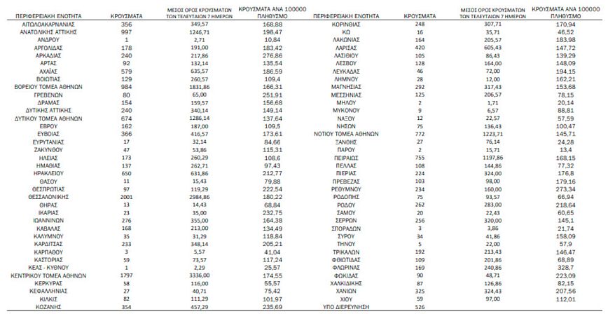 Αναλυτικότερα τα κρούσματα στις περιφερειακές ενότητες που ανήκουν στην Αττική: