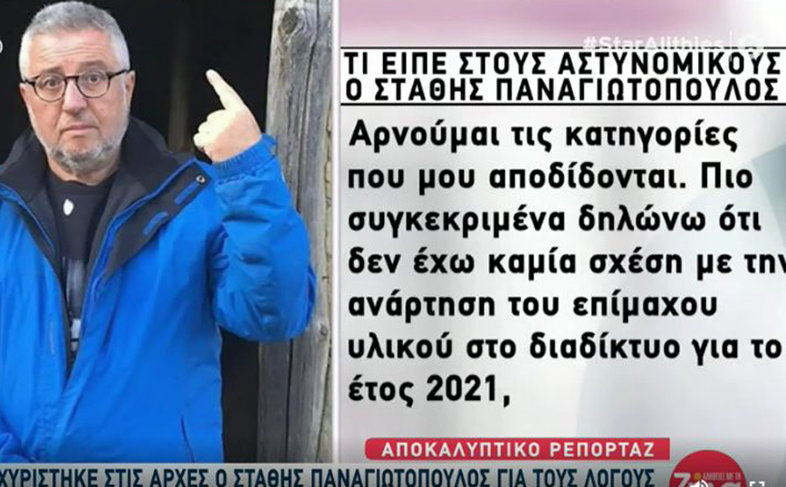 «Αρνούμαι τις κατηγορίες που μου αποδίδονται» τόνισε στην απολογία του ο Στάθης Παναγιωτόπουλος σύμφωνα με τα όσα μετέδωσε τη Δευτέρα η εκπομπή «Αλήθειες με τη Ζήνα» και πρόσθεσε: «Πιο συγκεκριμένα δηλώνω ότι δεν έχω καμία σχέση με την ανάρτηση του επίμαχου υλικού στο διαδίκτυο για το έτος 2021, για το οποίο και κατηγορούμαι σύμφωνα με τη μήνυση της κυρίας… Ειδικότερα στα επίμαχα δυο αρχεία αναγνωρίζω τον εαυτό μου ως συμμετέχοντα πλην όμως, δεν έχω προβεί στην ανάρτηση αυτών, στις συγκεκριμένες ιστοσελίδες και παρακαλώ υποβάλλοντας σχετικό αίτημα να ελεγχθεί από την υπηρεσία σας από ποια ηλεκτρονική IP έχουν αναρτηθεί αυτά καθώς και ποια ημερομηνία.