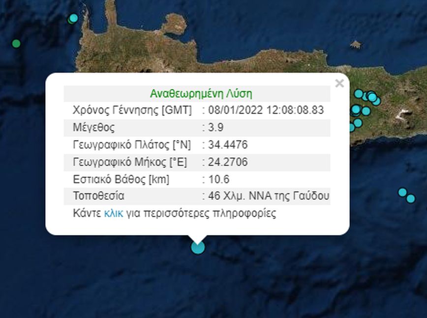 Σύμφωνα με το Γεωδυναμικό Ινστιτούτο, ο σεισμός είχε επίκεντρο θαλάσσιο χώρο 46 χιλιόμετρα νότια-νοτιοανατολικά της Γαύδου.