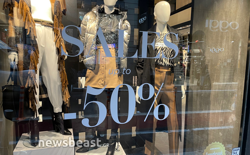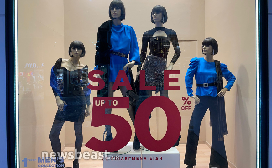 Πολλές βιτρίνες ενημερώνουν τους καταναλωτές για εκπτώσεις «όλα μισή τιμή» ή ακόμη και 79% στα προϊόντα τους.