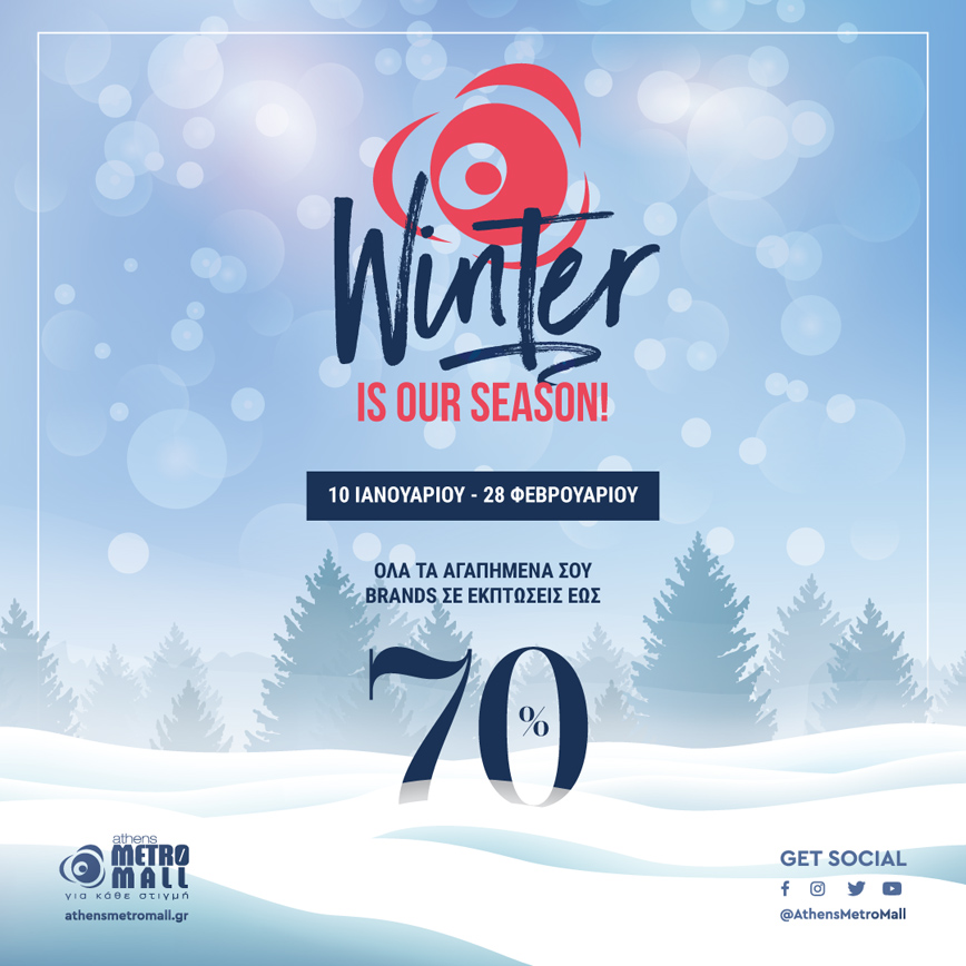 Winter is our season… και όπως κάθε χρόνο τέτοια εποχή, το ATHENS METRO MALL σε περιμένει για μία μοναδική εμπειρία shopping & fun, με εκπλήξεις για μικρούς και μεγάλους! Από τις 10 Ιανουαρίου έως τις 28 Φεβρουαρίου, το αγαπημένο εμπορικό κέντρο των Νοτίων Προαστίων γίνεται ο απόλυτος προορισμός shopping με εκπτώσεις έως 70% σε όλα τα αγαπημένα σου brands!