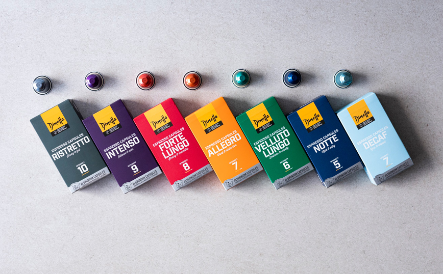 Οι μοντέρνες συσκευασίες με τις νέες συμβατές κάψουλες αλουμινίου Dimello, σας περιμένουν να τις δοκιμάσετε στα ράφια όλων των supermarkets και σε εξειδικευμένους συνεργάτες.