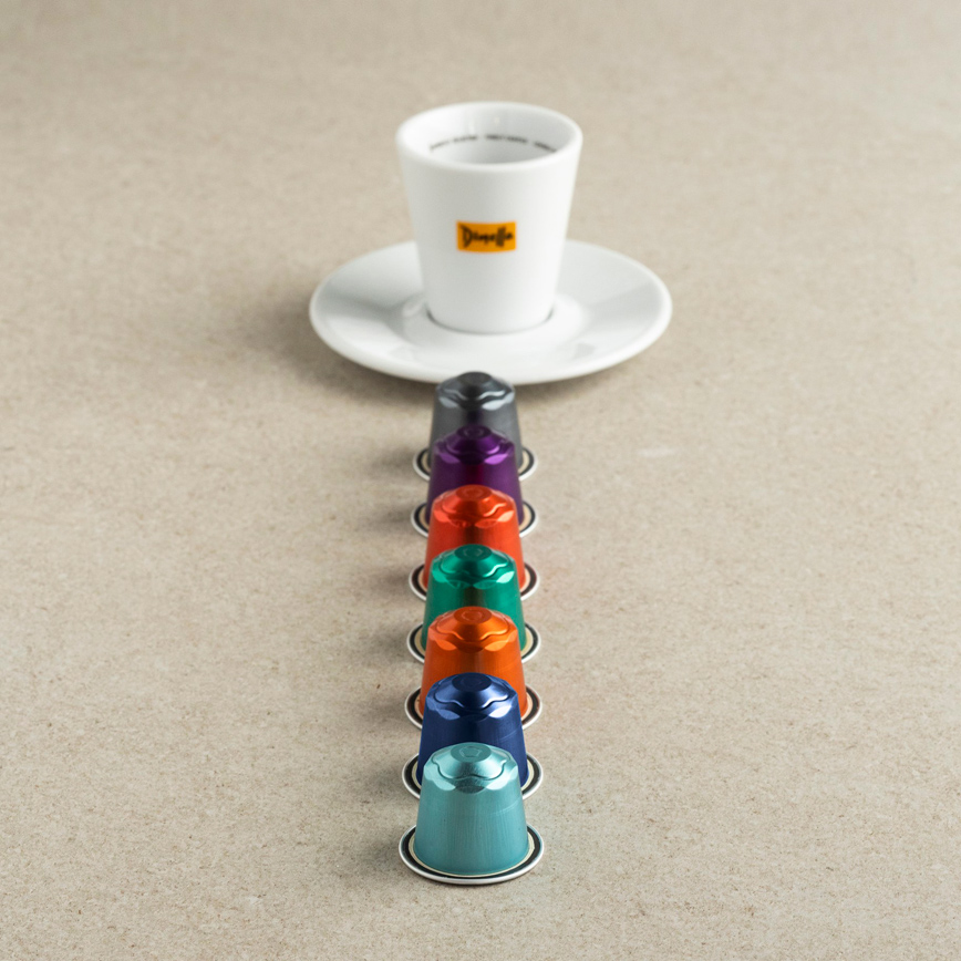 Κάθε κάψουλα αλουμινίου Dimello έχει να πει και μια ιστορία. Περιέχει όλη την εμπειρία του Dimello στον καφέ: τα ταξίδια για την επιλογή των κόκκων στα μαγευτικά τοπία που φύεται ο καφές, τον καθημερινό μόχθο των καλλιεργητών, την τέχνη του blending, τα μεθυστικά αρώματα από το καβούρδισμα, την τέχνη της συσκευασίας για άριστη διατήρηση και τελικά το πάθος για άριστο αποτέλεσμα σε κάθε φλιτζάνι Dimello.