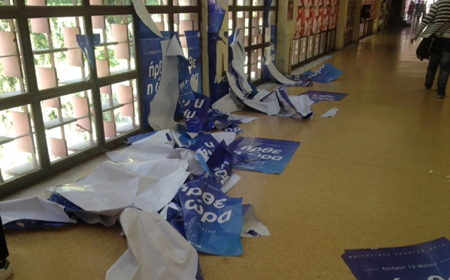 Τα άτομα που εισήλθαν στο Πανεπιστήμιο, κρατώντας στα χέρια τους διάφορα αντικείμενα, προκάλεσαν ζημιές και συγκρούστηκαν με φοιτητές.