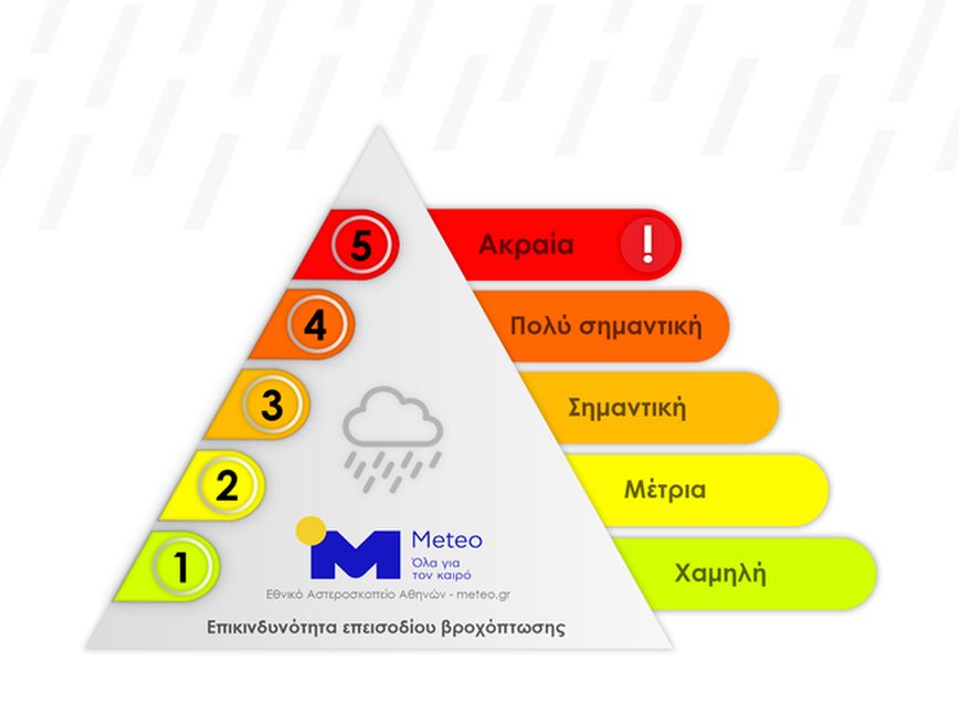 Το meteo του Εθνικού Αστεροσκοπείου Αθηνών αναμένεται να προχωρήσει στην κατηγοριοποίηση των κακοκαιριών στη χώρα μας, οι οποίες αναμένεται να προκαλέσουν μεγάλα ύψη βροχής. Από τον Ιανουάριο του 2022 στις ανακοινώσεις του meteo για επερχόμενες κακοκαιρίες θα δίνεται και η εκτιμώμενη κατηγορία της επικινδυνότητας της αναμενόμενης βροχής.