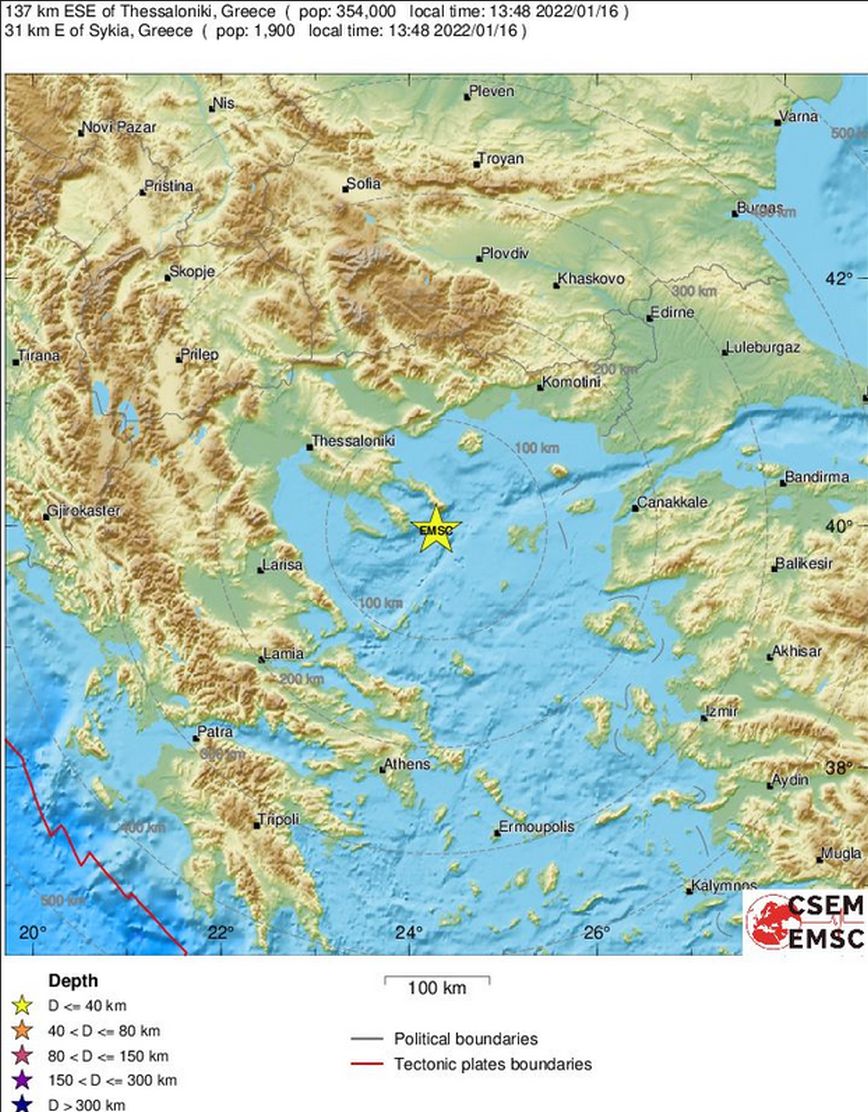 Το επίκεντρο εντοπίζεται στα 137 χλμ. νοτιοανατολικά της Θεσσαλονίκης.