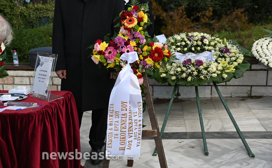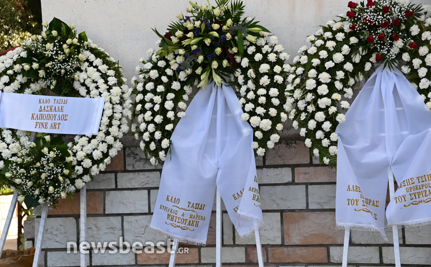 Η κηδεία του θα γίνει στις 14:00 στο κοιμητήριο Παπάγου και ήδη πολλά είναι τα στεφάνια που έχουν φτάσει στο ναό. Ο πολιτικός, επιχειρηματικός και καλλιτεχνικός κόσμος αποχαιρετά τον εμβληματικό ζωγράφο. Στεφάνια έχουν στείλει ο Κυριάκος και η Μαρέβα Μητσοτάκη, ο Αλέξης Τσίπρας, ο πρόεδρος της Βουλής Κωνσταντίνος Τασούλας, ο Δημήτρης και η Σάντυ Κοπελούζου, η υπουργός Πολιτισμού Λίνα Μενδώνη, η οικογένεια του Σπύρου Λάτση, η πρόεδρος και τα μέλη του Συλλόγου Ελπίδα, ο Βαγγέλης Μαρινάκης, ο δήμαρχος Αθηναίων Κώστας Μπακογιάννης, η Εθνική Πινακοθήκη, ο Γιώργος και η Άννα Νταλάρα.