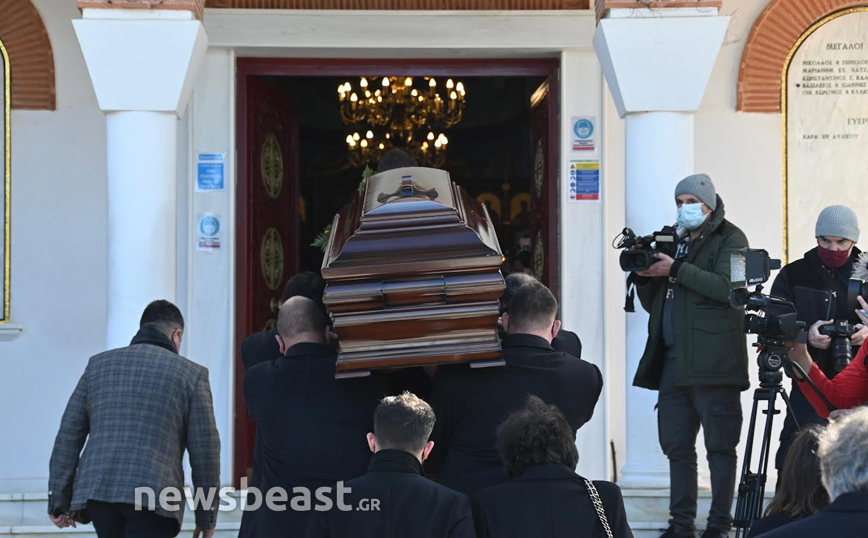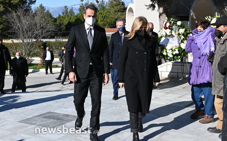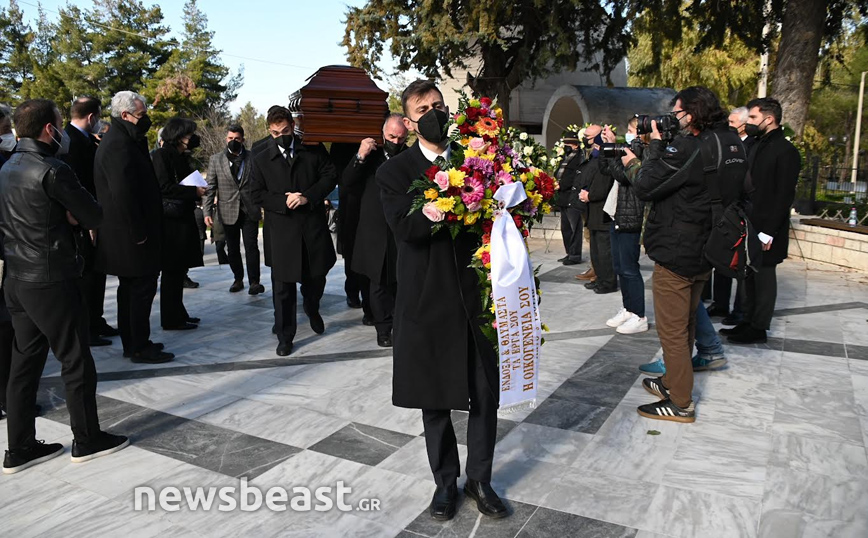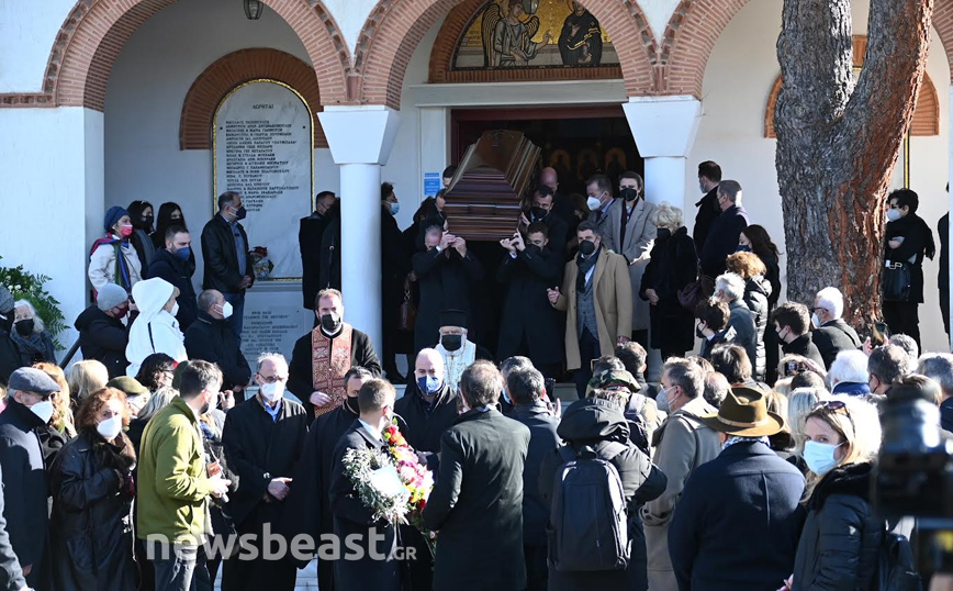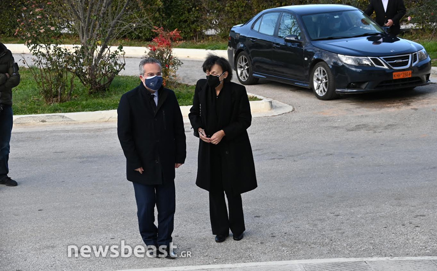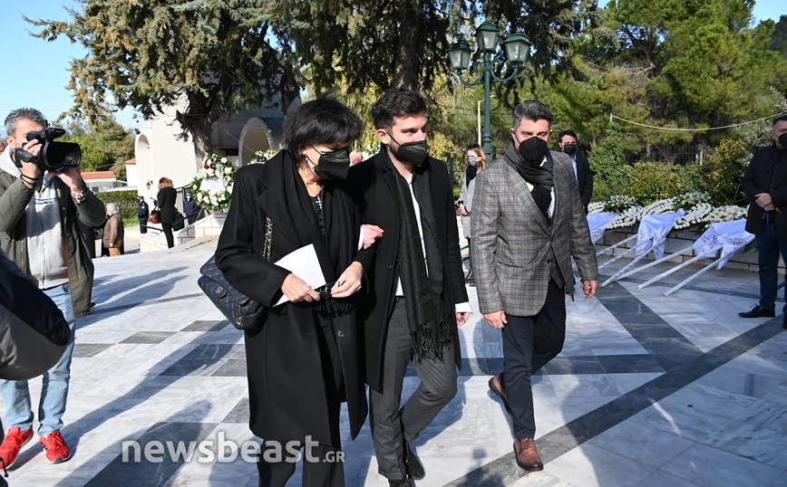 Στην κηδεία παρευρίσκονται, μεταξύ άλλων, ο πρωθυπουργός Κυριάκος Μητσοτάκης και η σύζυγός του, Μαρέβα, η υπουργός Πολιτισμού Λίνα Μενδώνη, ο πρώην Πρόεδρος της Δημοκρατίας Προκόπης Παυλόπουλος, ο Μανώλης Μητσιάς, ο Γιώργος Νταλάρας.