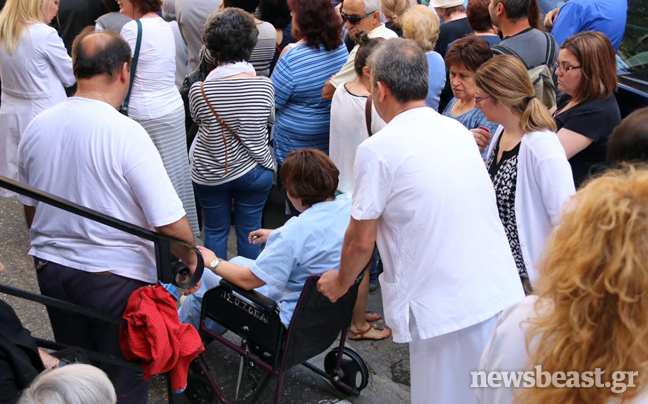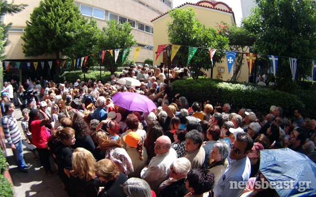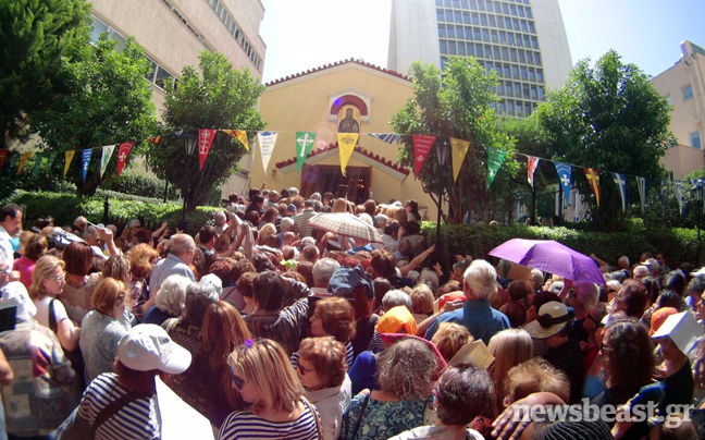 Ασθενείς αλλά και απλοί πολίτες, που στήθηκαν από τα ξημερώματα της Παρασκευής έξω από το νοσοκομείο, θέλουν να ασπαστούν το ιερό λείψανο και να απευθύνουν παράκληση στην Αγία.