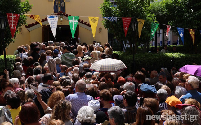 Στο σημείο επικρατεί κυριολεκτικά το αδιαχώρητο από τους πιστούς, που περιμένουν ήδη αρκετές ώρες, ενώ ορισμένοι εκφράζουν φόβους ότι δεν θα προλάβουν να προσκυνήσουν.