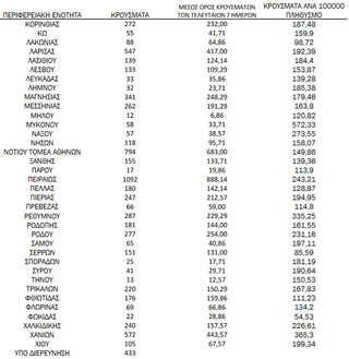 Η γεωγραφική κατανομή στην υπόλοιπη Ελλάδα