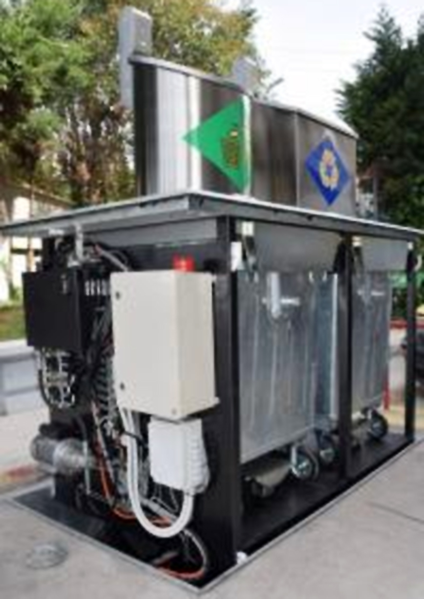 - 107 συστήματα κάθετης διαβαθμισμένης συμπίεσης απορριμμάτων συνολικής χωρητικότητας 2.200 λίτρων (σύστημα 2 κάδων) σε κάδους κοινής χρήσης. (107×2 κάδοι).