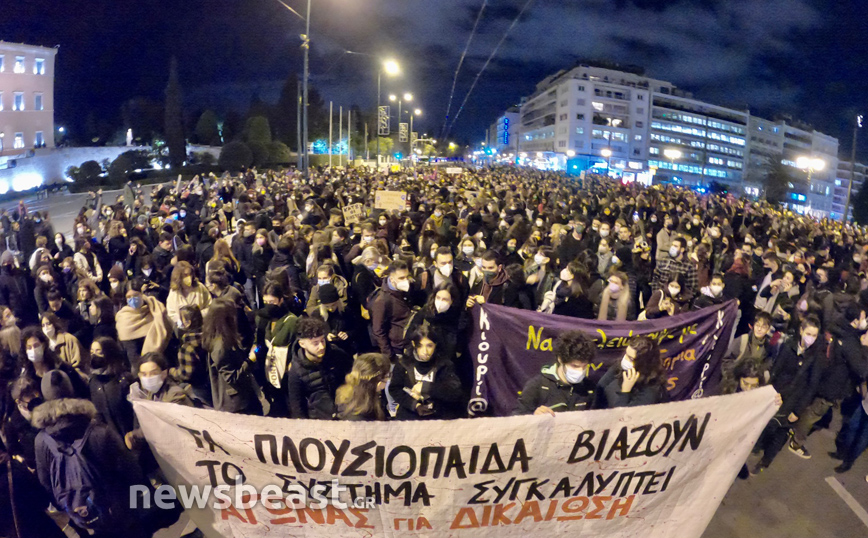 Μεγάλη συγκέντρωση στο Σύνταγμα με αφορμή το πρόσφατο περιστατικό με την υπόθεση βιασμού της 24χρονης Γεωργίας το βράδυ της Πρωτοχρονιά στη Θεσσαλονίκη.