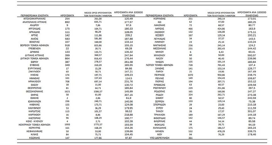 Αναλυτικότερα τα κρούσματα σε όλη τη χώρα