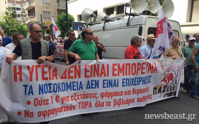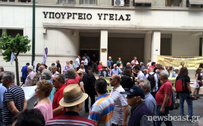 Στο υπουργείο Υγείας έφτασαν με πορεία συνταξιούχοι που ανταποκρίθηκαν στο κάλεσμα για παναττική πανσυνταξιουχική διαμαρτυρία για την Υγεία.