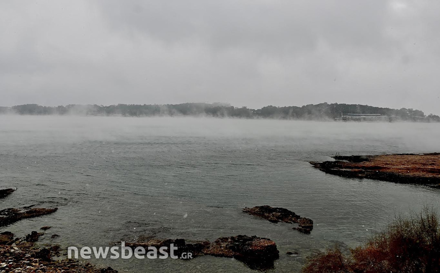 Ο φακός του Newsbeast βρέθηκε στη χιονισμένη Βουλιαγμένη το μεσημέρι της Δευτέρας (24/1) και κατέγραψε το μοναδικό φαινόμενο με τη θάλασσα να… ατμίζει.