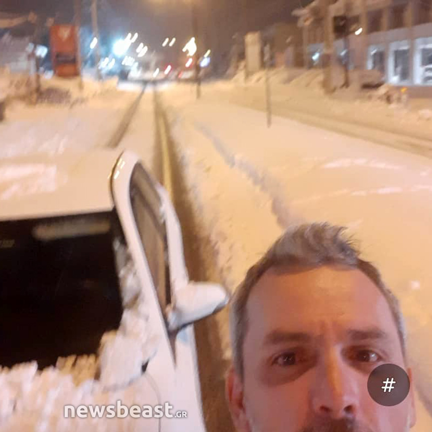 Ξεκίνησα να εργάζομαι κανονικά κάνοντας και δρομολόγια σε φαρμακεία προς το Περιστέρι. Γύρω στις 14.00 όμως και μαθαίνοντας ότι η κατάσταση με τους δρόμους και την χιονόπτωση δυσκολεύουν, ανακοινώνω στη δουλειά μου ότι πρέπει να φύγω και αρχίζω να ανεβαίνω προς το σπίτι μου. Την ίδια στιγμή έφυγαν και όλοι οι υπόλοιποι από την δουλειά.