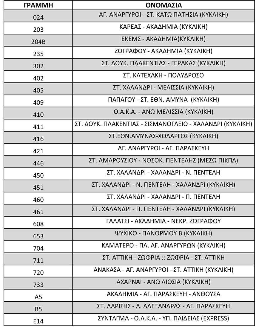 Σύμφωνα με τον ΟΑΣΑ, οι γραμμές που αποσύρονται είναι οι εξής, όπως αναφέρονται στον παρακάτω πίνακα:
