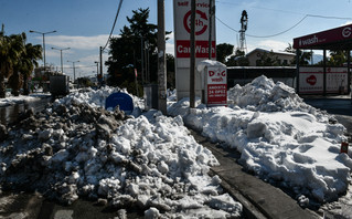 Πιο χαρακτηριστική περίπτωση είναι αυτή στην περιοχή Πάτημα Χαλανδρίου, όπου το χιόνι ξεπερνά τους 80 πόντους και εργάζονται ασταμάτητα τέσσερα μηχανήματα.