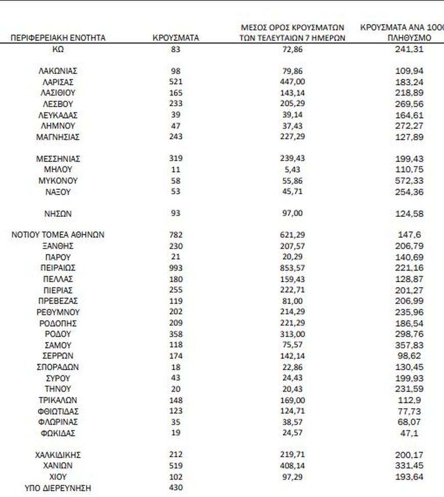 Ειδικότερα στην Αττική τα κρούσματα κατανέμονται ως εξής: