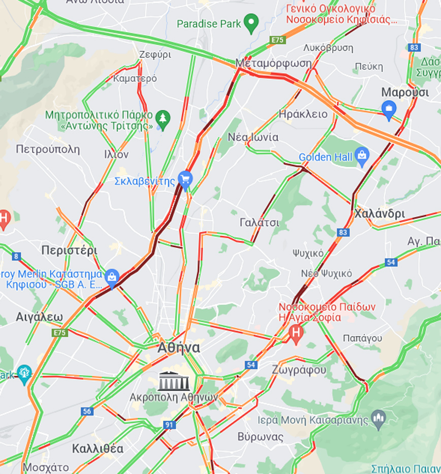 Ο χάρτης της Google με την κίνηση στους δρόμους