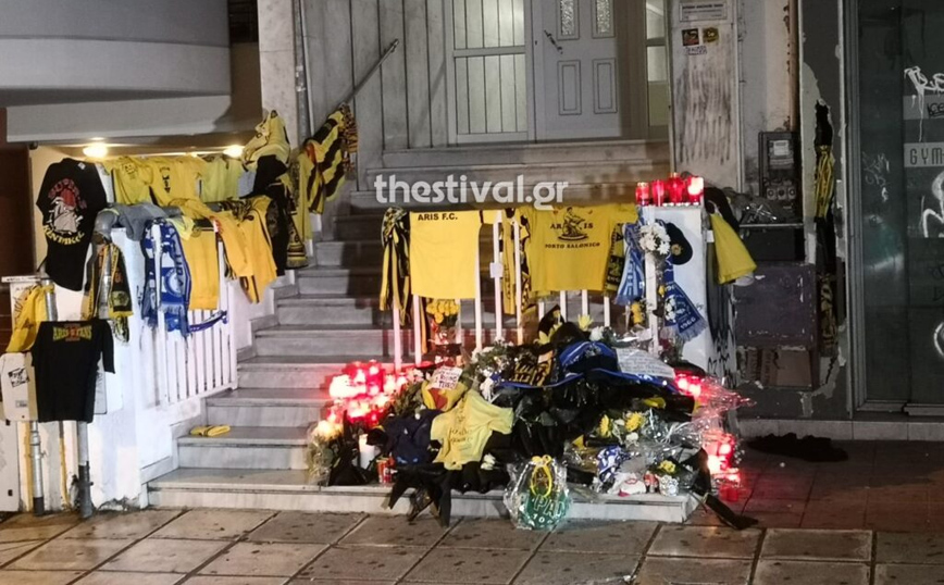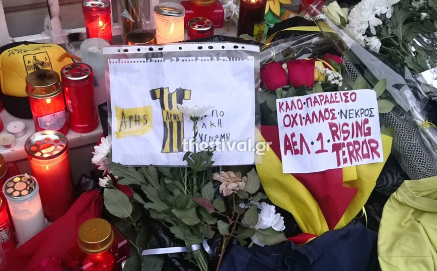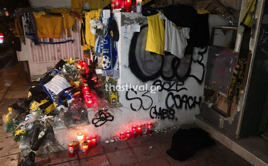 Εκεί όπου πέθανε ο 19χρονος φίλοι αλλά και άγνωστοι έχουν αφήσει λουλούδια, κεριά, σημειώματα κασκόλ και μπλούζες της αγαπημένης του ομάδας δηλαδή του Άρη.
