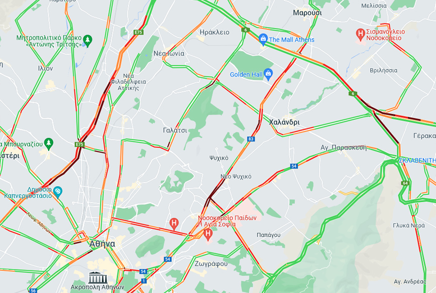 Ο χάρτης της Google με την κίνηση στους δρόμους