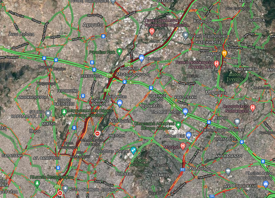 Όπως φαίνεται και στον χάρτη της Google η κίνηση ξεκινάει από το ύψος της Κηφισιάς, μέχρι και τη Λιοσίων.