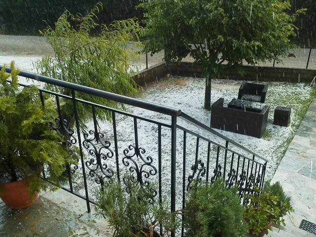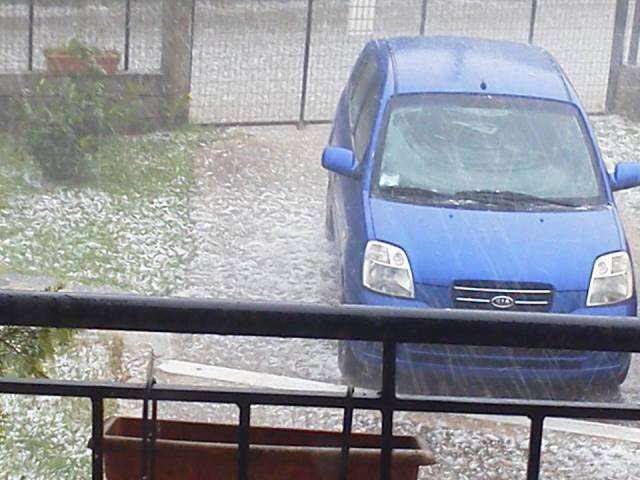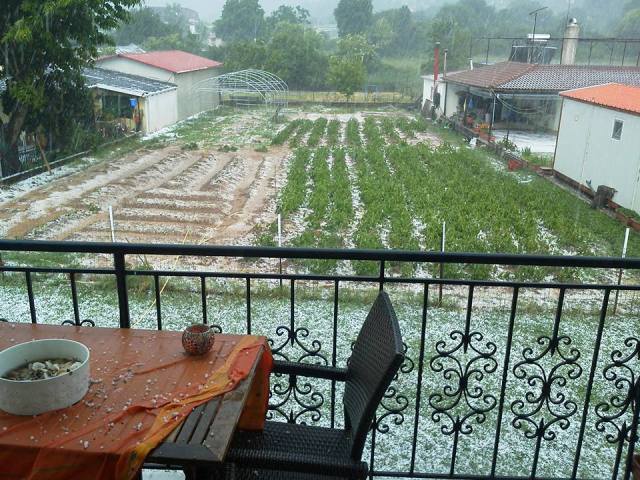 Από τη μια στιγμή στην άλλη ο ουρανός μαύρισε. Μέσα σε λίγα λεπτά οι ουρανοί άνοιξαν και το χαλάζι κάλυψε τα πάντα.