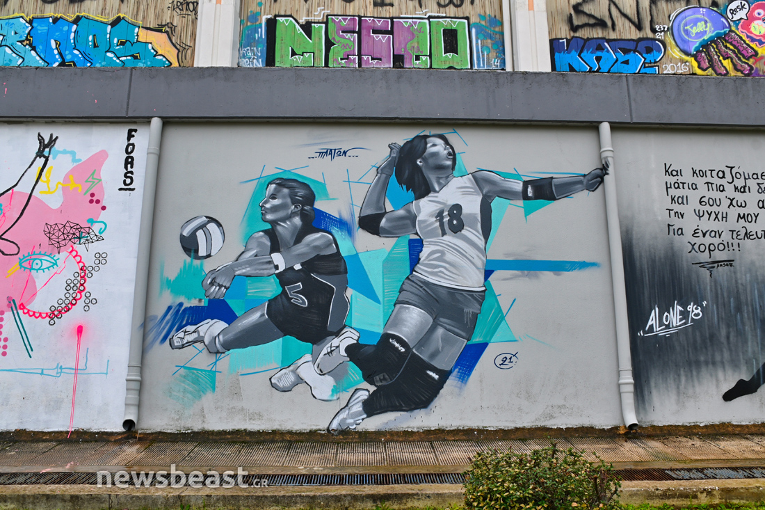 «Εκεί επικράτησαν περισσότερο τα έργα lettering» μας λέει ο Νίκος και συμπληρώνει: «σκέψου έβαψαν περιμετρικά το γήπεδο αλλά και μέσα, 210 άτομα από όλη την Αθήνα. Οι ηλικίες των καλλιτεχνών ξεκινούσαν από πιτσιρικάδες 12 χρονών μέχρι 45άρηδες. Και τα δύο φεστιβάλ απέδειξαν το εξής- υπάρχει ένα τεράστιο κοινό για αυτή την τέχνη, όχι μόνο από τους ίδιους τους street artists και τους πιτσιρικάδες που θέλουν να μπουν στο χορό αλλά και από τους ίδιους τους πολίτες».