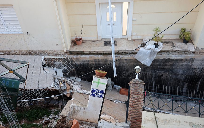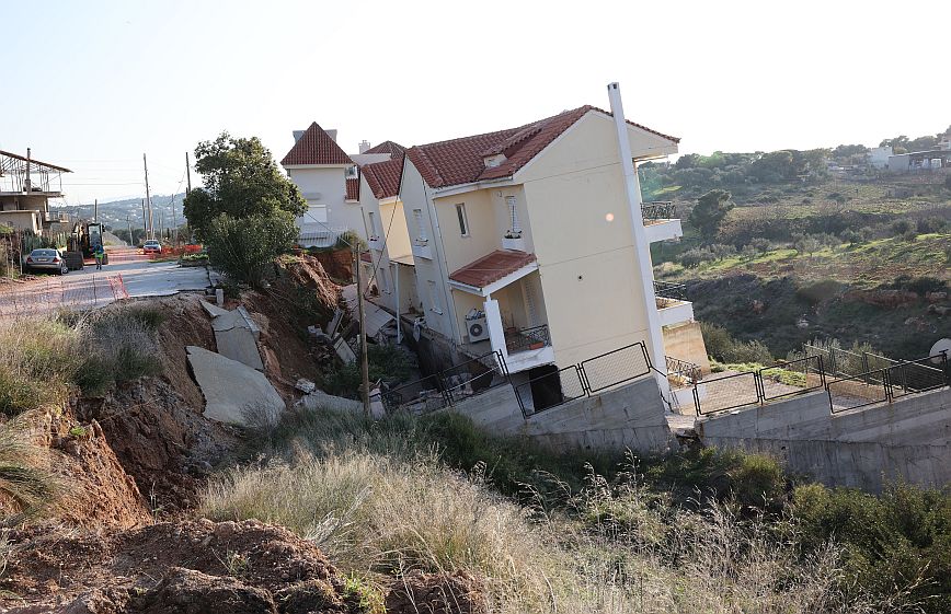 Σοκ προκάλεσαν οι εικόνες από τον Νέο Βουτζά, που δείχνουν το έδαφος να έχει υποχωρήσει παρασέρνοντας τρία σπίτια.